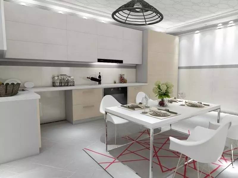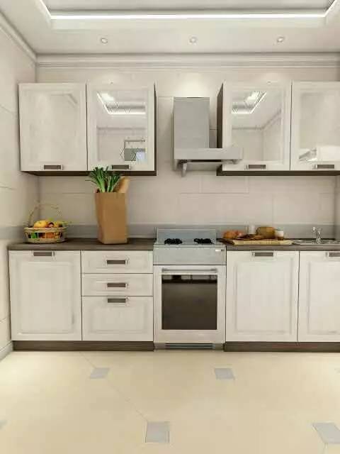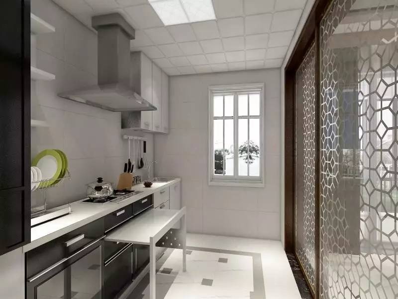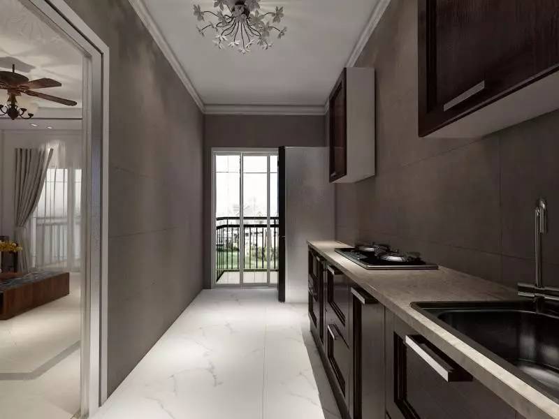 ▲咖啡色與白色搭配的廚房櫥櫃,給人一種(zhǒng)溫馨淡雅之氣,一字型櫥櫃設計,完美契合了廚房空間,開(kāi)放式廚房更加大氣美觀。