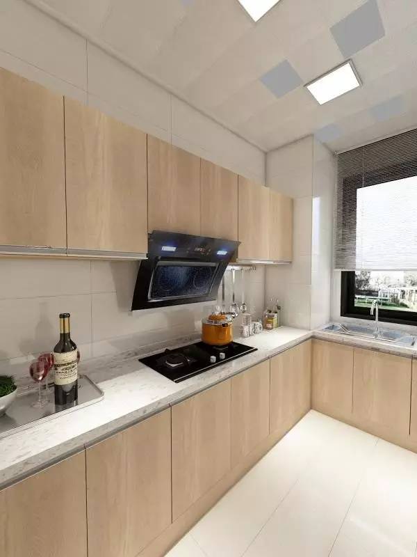 ▲廚房的瓷磚色彩柔和,搭配木質櫥櫃。簡約用不褪色的時(shí)尚調調,喜歡簡約生活的你豈可錯過(guò)這(zhè)美麗的風景線。