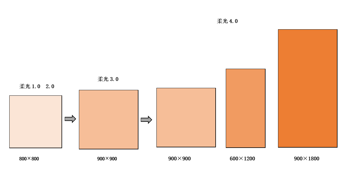 29°柔光磚從1.0到4.0,在規格創新方面(miàn)走過(guò)了一個由小至大,從單一規格向(xiàng)多規格發(fā)展的曆程。