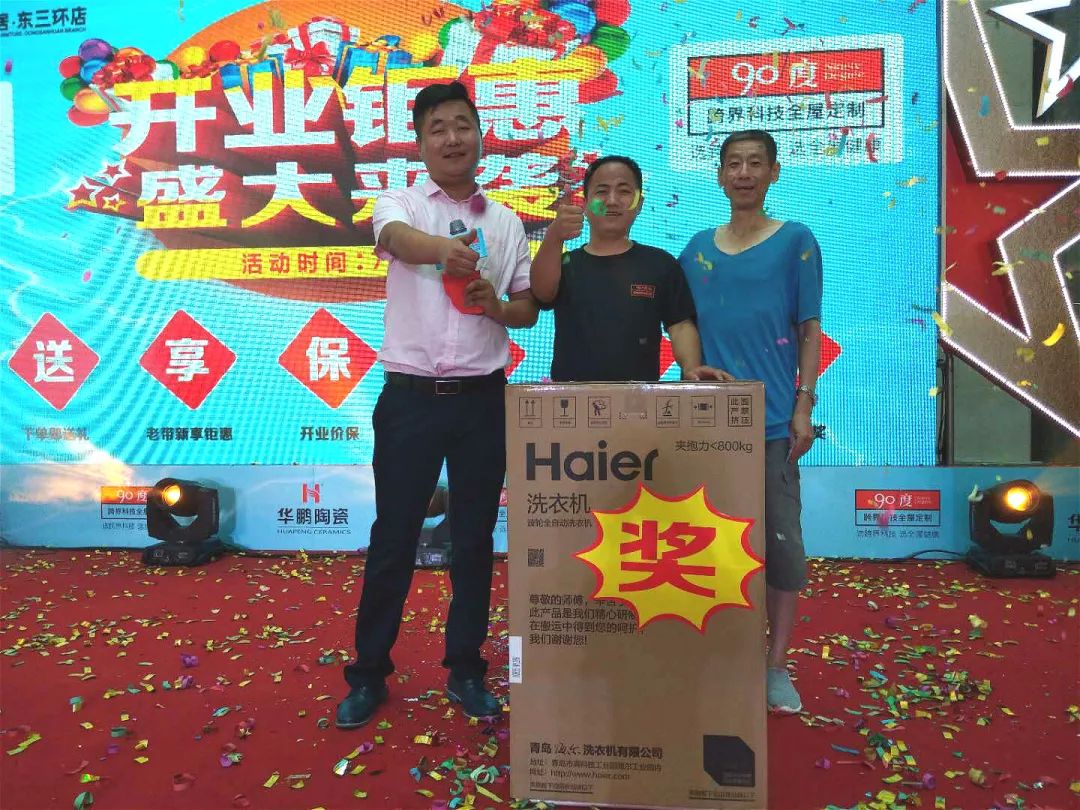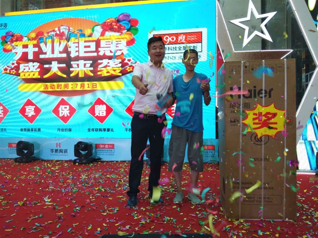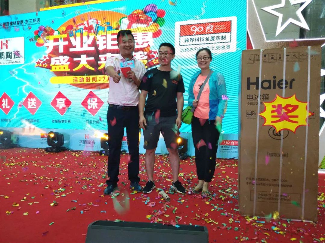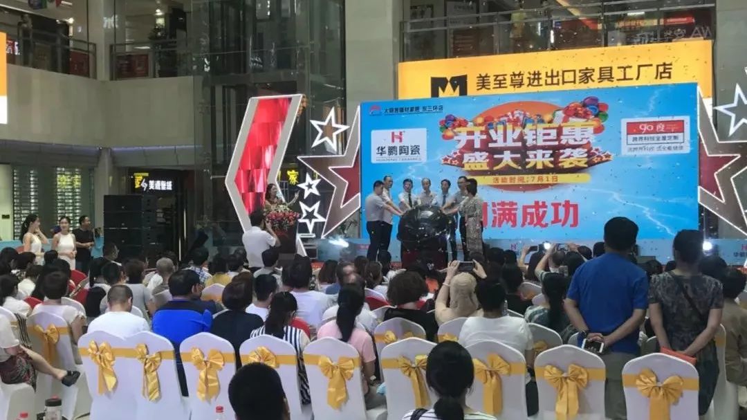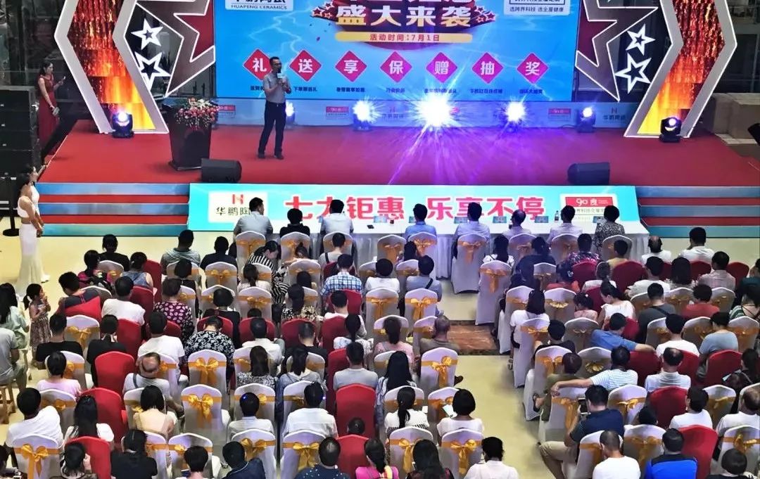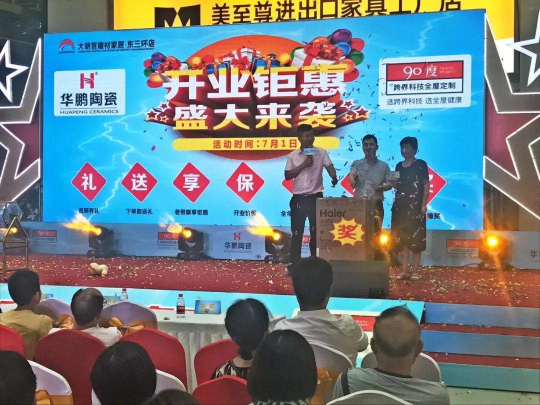 下午13:30,在火爆熱辣的開(kāi)場舞後(hòu),“華鵬陶瓷攜手90度全屋定制開(kāi)業巨獻”活動拉開(kāi)了序幕。