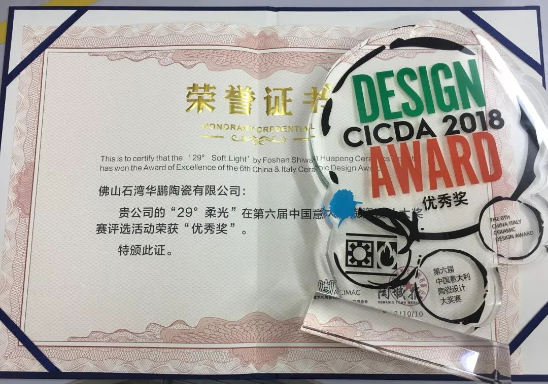 10月10日,由意大利陶瓷機械及設備制造商協會(huì)和陶城報社共同主辦的2018中國(guó)意大利陶瓷設計大賽(以下簡稱“中意設計大賽”)頒獎典禮在佛山新媒體産業園盛大開(kāi)幕。本次大賽得到了意大利對(duì)外貿易委員會(huì)的大力支持。華鵬陶瓷29°柔光産品從衆多參賽作品中脫穎而出,榮獲“第六屆中國(guó)意大利陶瓷設計大賽優秀獎”