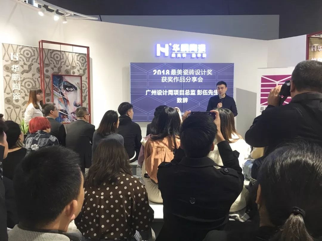 11月28日下午,由華鵬陶瓷聯手廣州設計周共同舉辦的“2018紅棉獎·最美瓷磚設計獎作品分享會(huì)”在廣州保利世貿博覽館6号館6C06華鵬陶瓷展位隆重舉行。