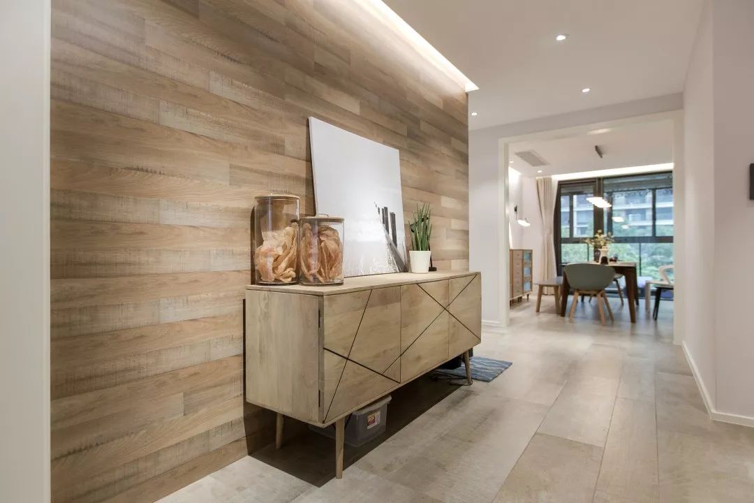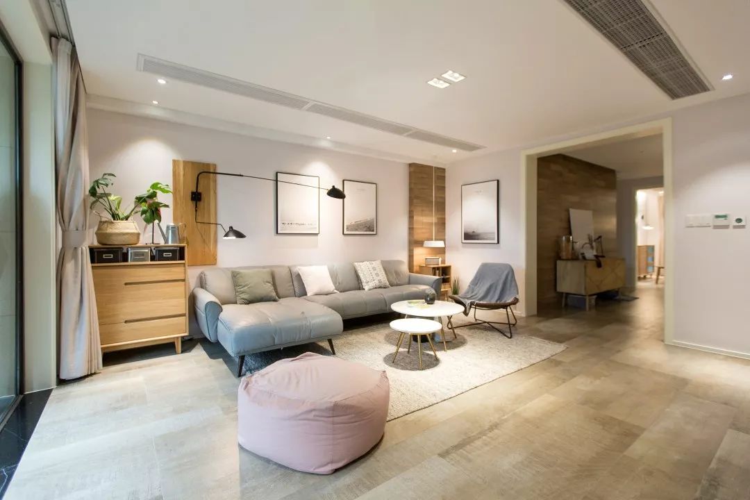 家,是我們日常除上班地點之外,呆的時(shí)間最多的場所。所以,在本案中,設計師沒(méi)有過(guò)多運用裝飾性物品,在整體色彩運用中以白色、原木色爲主,霧霾藍、淡粉等顔色爲輔,爲業主打造出一個溫馨簡約的家居場所