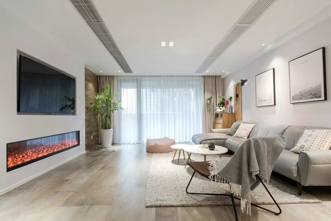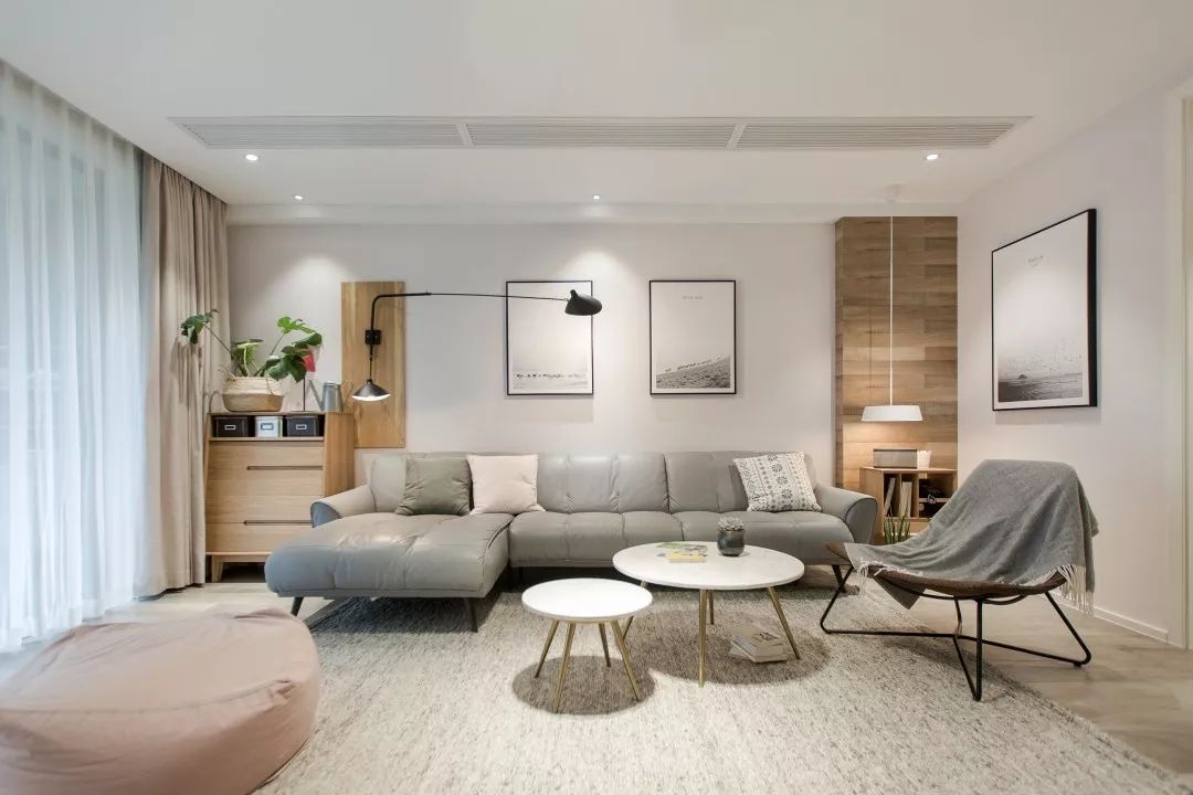 整個空間沒(méi)有多餘的裝飾,寬大的玻璃窗,可以讓自然光更好(hǎo)的照到室内,自然光與燈光的結合,通過(guò)每種(zhǒng)材質的相互組合形成(chéng)了自然清新的居家感受。