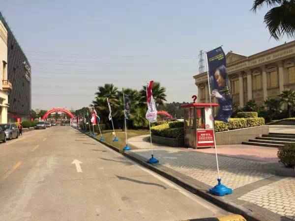 陶瓷總部道(dào)路一旁,刀旗飄飄,正在列道(dào)歡迎遠道(dào)而來的朋友和客人!