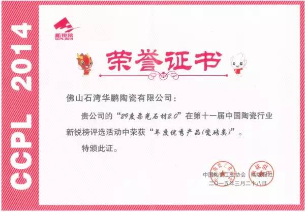 華鵬陶瓷榮獲數項殊榮