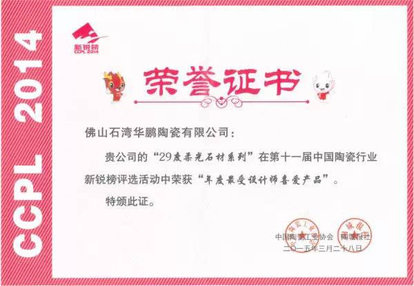 被奉爲中國(guó)陶業的“奧斯卡”獎的新銳榜,是目前中國(guó)建瓷行業中覆蓋面(miàn)最廣、影響力最大、評選結果最具權威的評選活動。華鵬陶瓷從衆多參選企業中脫穎而出,榮獲“年度優秀産品”、“年度最受設計師喜愛産品”、“年度最受工程用戶喜愛産品”榮譽稱号,成(chéng)爲頒獎晚會(huì)霓虹追逐的焦點。這(zhè)是對(duì)華鵬陶瓷對(duì)過(guò)去一年創新成(chéng)果的肯定,也充分說(shuō)明華鵬陶瓷産品得到了來自行業、合作夥伴、消費者的廣泛認同和追捧。