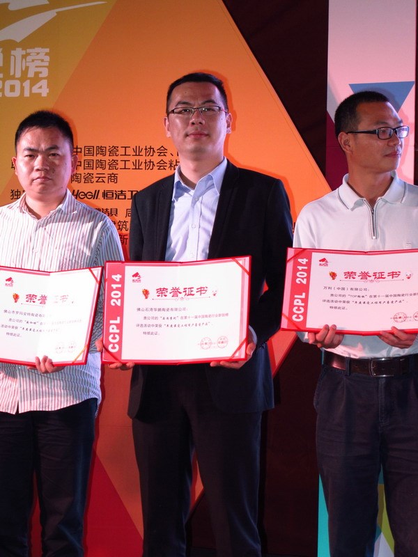 華鵬陶瓷總經(jīng)理姚松榕先生代表HOPO華鵬出席頒獎晚會(huì)并領取各獎項。