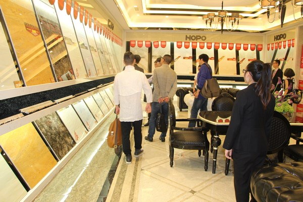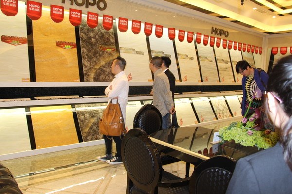 4月19日,中國(guó)陶瓷新品彙評委、2014金堂獎獲獎設計師——趙學(xué)強、何永明、馬勁夫、彭征、陳志斌、朱曉鳴、杜恒、羅卓毅、邵唯晏、鄭軍等一行莅臨華鵬總部展廳進(jìn)行參觀評審。