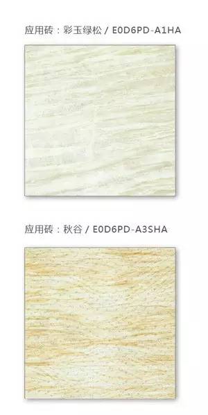 29度柔光石材2.0應用解說(shuō):該空間色調柔和,主磚與花磚的搭配應用整體空間呈現淡淡的金黃色,如同身臨稻田下感受黃昏的太陽,暖暖的金光迎面(miàn)撲來,微風伴随著(zhe)稻穗的跳動,仿佛述說(shuō)著(zhe)秋收的到來。彩玉綠松青綠色的花紋讓廚房塗上一層自然的色彩。