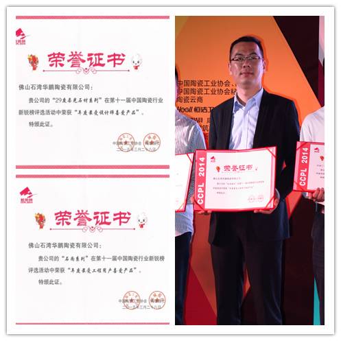 第十一屆中國(guó)陶瓷行業新銳榜斬獲數項榮譽,這(zhè)些獎項都(dōu)是華鵬陶瓷銳意創新、進(jìn)取的最好(hǎo)證明及诠釋。華鵬人杠杠的!