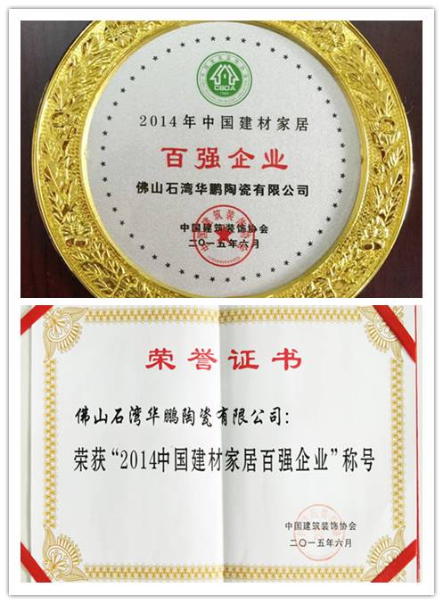 6月28日下午,在中國(guó)裝飾協會(huì)領導代表、行業專家、企業負責人和設計師逾千人的共同見證下,華鵬瓷磚榮獲中國(guó)建材家居企業100強榮譽稱号,再一次展示了華鵬陶瓷非凡的品牌實力。