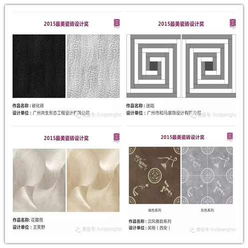 2015年最美瓷磚設計獎獲獎作品最終在大家熱烈的掌聲中迎來了結束。今年的最美瓷磚設計獎精彩非凡,讓我們一同期待,明年這(zhè)個設計盛會(huì)的又一次開(kāi)始!