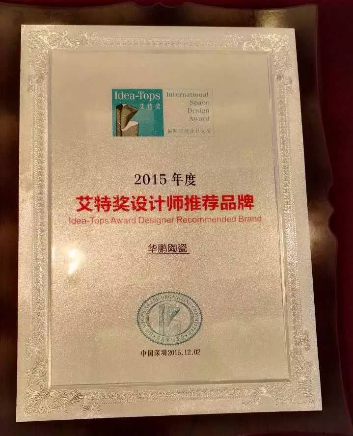 華鵬陶瓷一直以來,緻力于設計營銷,此次獲得2015年度艾特獎設計師推薦品牌的榮譽,正是一直以來緻力于設計的見證。作爲一個綠色創新型企業,華鵬陶瓷希冀,以企業的責任感與使命,引領設計,創造未來!