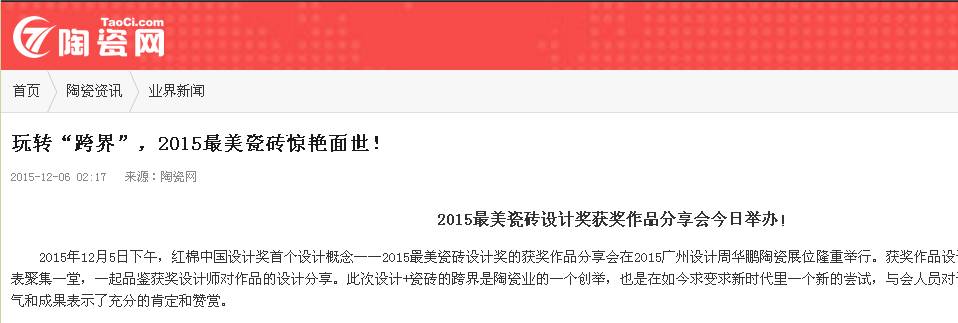 跨界“最美”,2015最美瓷磚設計獎獲獎作品分享會(huì)!