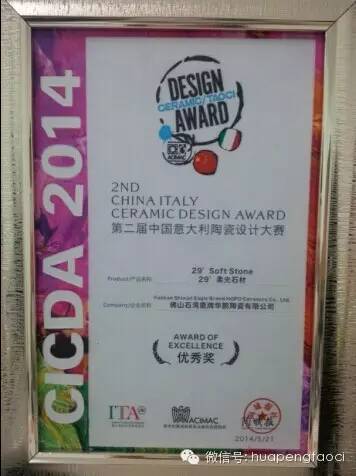 5月21日,由意大利對(duì)外貿易委員會(huì)、意大利陶瓷機械設備制造商協會(huì)以及《陶城報》聯合主辦的“第二屆中國(guó)意大利陶瓷設計大賽”在佛山新媒體産業園隆重舉行。華鵬陶瓷29°柔光石材憑借新穎的設計及獨一無二的感官體驗,赢得組委會(huì)一緻好(hǎo)評,榮獲“第二屆中國(guó)意大利陶瓷設計大賽”優秀獎。