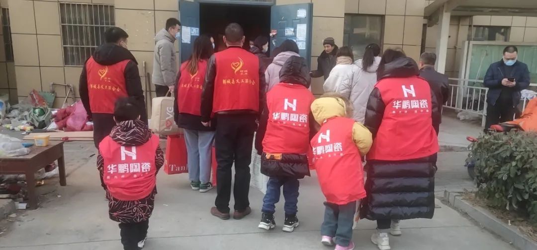 築+公益項目收尾階段,華鵬陶瓷作爲愛心企業一起(qǐ)走訪改造項目,并爲幫扶家庭送上慰問物資。