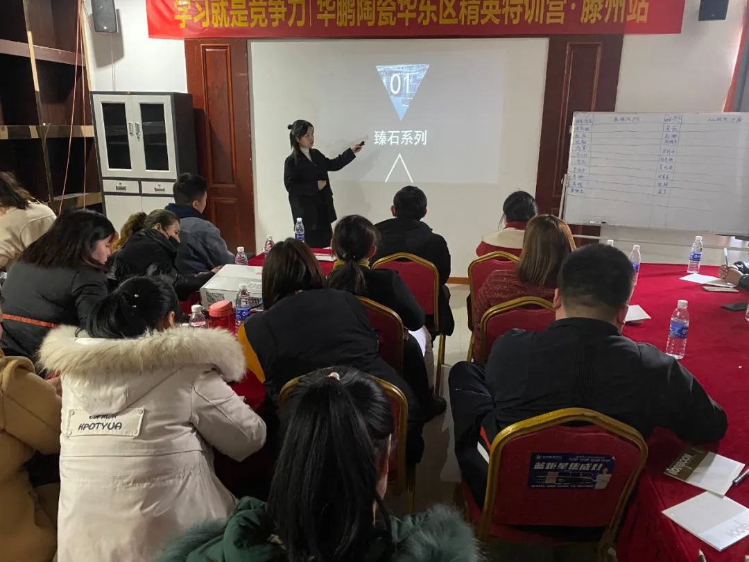 爲助力2022年度業績沖刺,提升終端銷售能(néng)力,品牌認知、基礎産品知識以及銷售思維和技巧,3月1-2日,陶瓷一線品牌華鵬陶瓷H+營銷學(xué)院于山東滕州站舉行“最美柔光家-華鵬陶瓷華東區 315 特訓營”,爲華東區客戶開(kāi)啓2022新征程,注入強心劑。