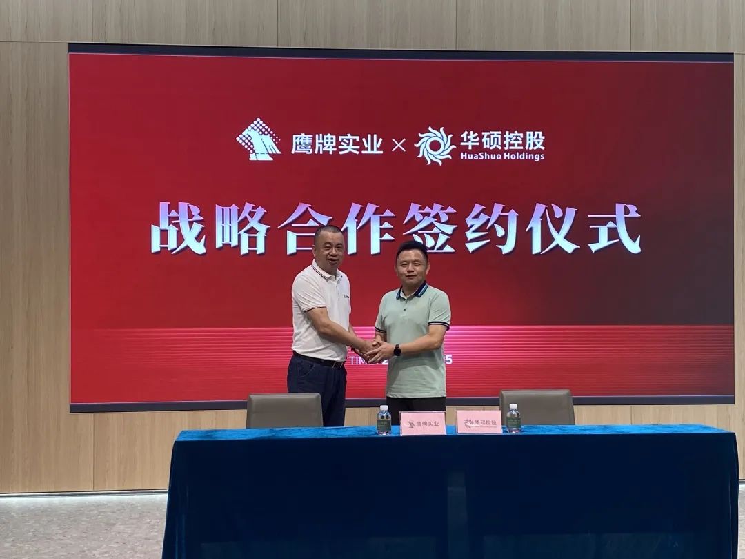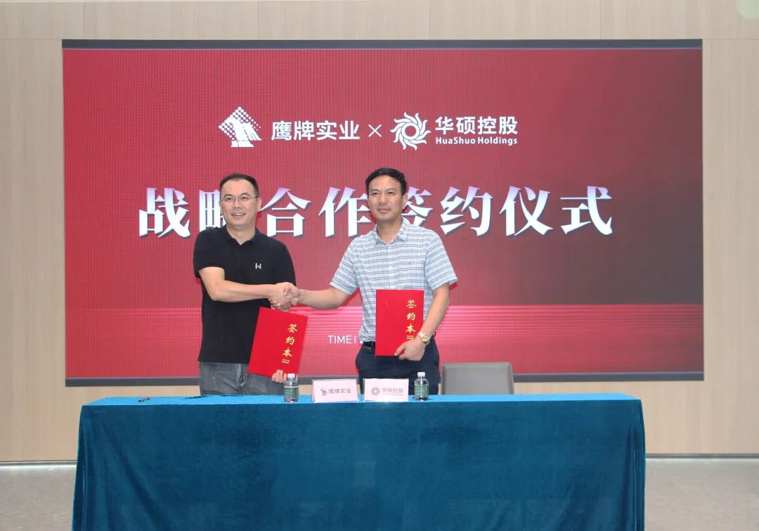 爲實現深層次的資源共享,深化全面(miàn)合作,互利共赢,促進(jìn)企業長(cháng)遠發(fā)展,7月5日下午,廣東鷹牌實業有限公司(以下簡稱鷹牌實業)與江西華碩控股集團有限公司(以下簡稱華碩控股)戰略合作協議簽約儀式在鷹牌生活健康人居體驗館舉行。
