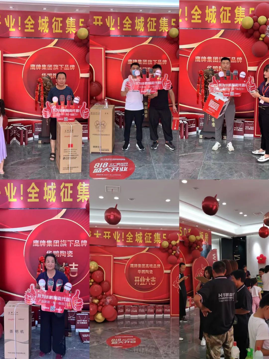 高端的品牌魅力,獨特的産品展示,輕松愉悅的消費環境,吸引了大量業主朋友前來華鵬陶瓷,重磅推出了全城征集樣闆房及購磚享抽獎大禮活動,現場人氣爆滿,開(kāi)業當天突破100單,銷售額創曆史新高。