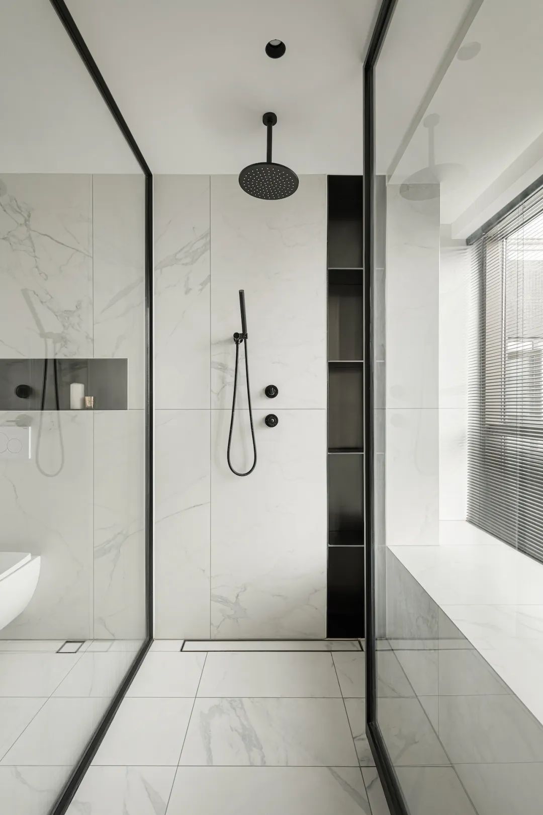 衛生間采用白色瓷磚通鋪,營造了精緻與時(shí)尚的視覺感受,極簡的設計展現出了現代主義的高度理性,減少了陳設的構成(chéng)元素,整個空間簡潔而素雅。