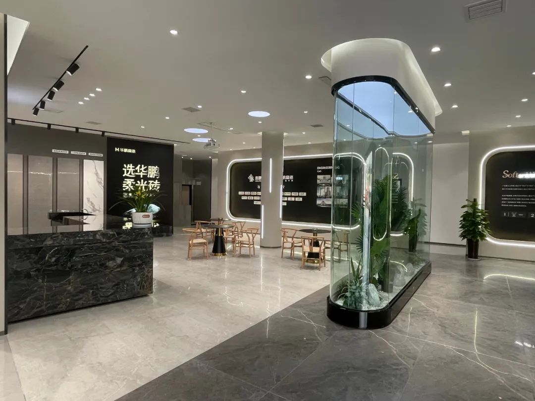 在華鵬陶瓷與西南區域運營中心正式簽約後(hòu),華鵬總部市場運營團隊、設計團隊迅速切入,從産品方案制定、展廳設計及施工,全程提供專業指導。經(jīng)過(guò)精心設計與籌備,西南運營中心1000㎡展廳已全面(miàn)落成(chéng),以總部美學(xué)設計标準爲輸出。