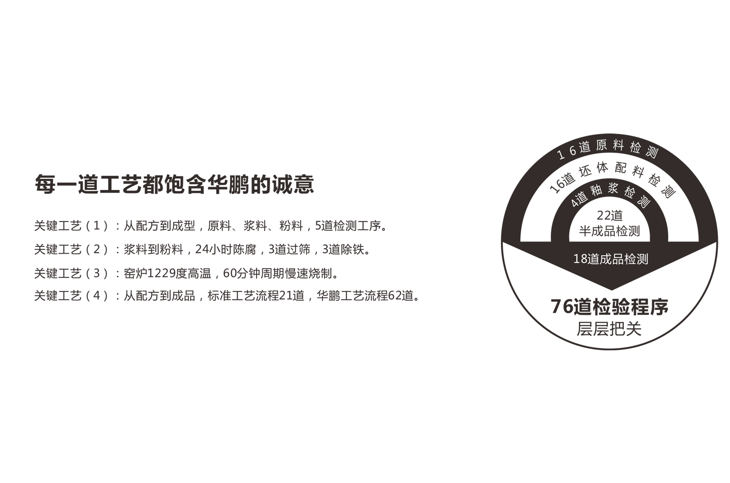 8809噸定制壓機;1229度高溫,60分鍾慢燒周期;76道(dào)生産檢驗程序,确保華鵬産品高品質保證。